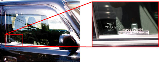 (十二)自動車に盗難防止装置が備えられていることを表示する標識又は自動車の盗難を防止するために窓ガラスに刻印する文字及び記号であって、側面ガラスのうち、標識又は刻印の上縁の高さがその附近のガラス開口部(ウェザ・ストリップ、モール等と重なる部分及びマスキングが施されている部分を除く。以下、本条において同じ。)の下縁から100mm以下、かつ標識又は刻印の前縁がその附近のガラス開口部の後縁から125mm以内となるように貼付又は刻印されたもの。